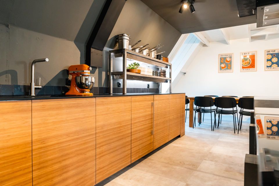 Kookstudio Spijs is dé kookstudio in Nijmegen. Midden in het centrum van Nijmegen, maar net buiten de drukke winkelstraten, bevinden wij ons op de bovenste verdieping in een van de oudste gebouwen van Nijmegen, de commanderie van St. Jan. Ervaar een onvergetelijke kookworkshop op deze geschiedenisrijke locatie in onze moderne keuken met een uniek uitzicht op de Waal. Onze workshops volg je in een relaxte en intieme setting. Ons aanbod aan workshops blijft variëren. Denk aan Aziatische, Italiaanse, Seizoenen en Vega(n) workshops. Naast privé workshops voor bedrijven en groepen bieden wij ook wisselende open workshops aan voor kleine groepen met wisselende thema’s. Super geschikt voor een uniek en gezellig dagje uit! Zin in een uniek uitje? Kom een gezellige en leerzame kookworkshop volgen. Onderaan deze pagina vindt je meer info over ons. We hopen je gauw te zien bij Kookstudio Spijs." – Noor Boereboom en Alexander Steenis van Kookstudio Spijs.