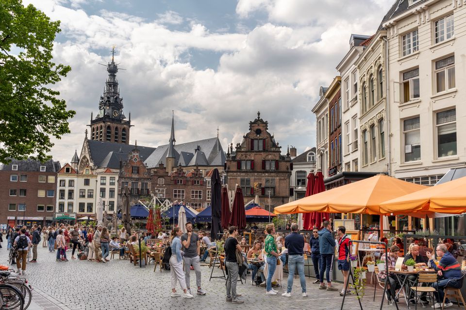 Je loopt zo naar de Grote Markt vanaf de Stevenskerk. De Grote Markt is één van de gezelligste locaties in Nijmegen om een borrel te drinken. Op de Grote Markt zie je goed het verschil tussen de noord- en zuidzijde van het plein. De zuidzijde van het plein is namelijk zwaar getroffen door het bombardement op Nijmegen in de Tweede Wereldoorlog. De noordzijde is nog goed gepreserveerd. Neem op de Grote Markt plaats bij Grand Café Moenen om lekker in het zonnetje te zitten. Ze hebben een breed aanbod aan speciaalbieren en wijnen.