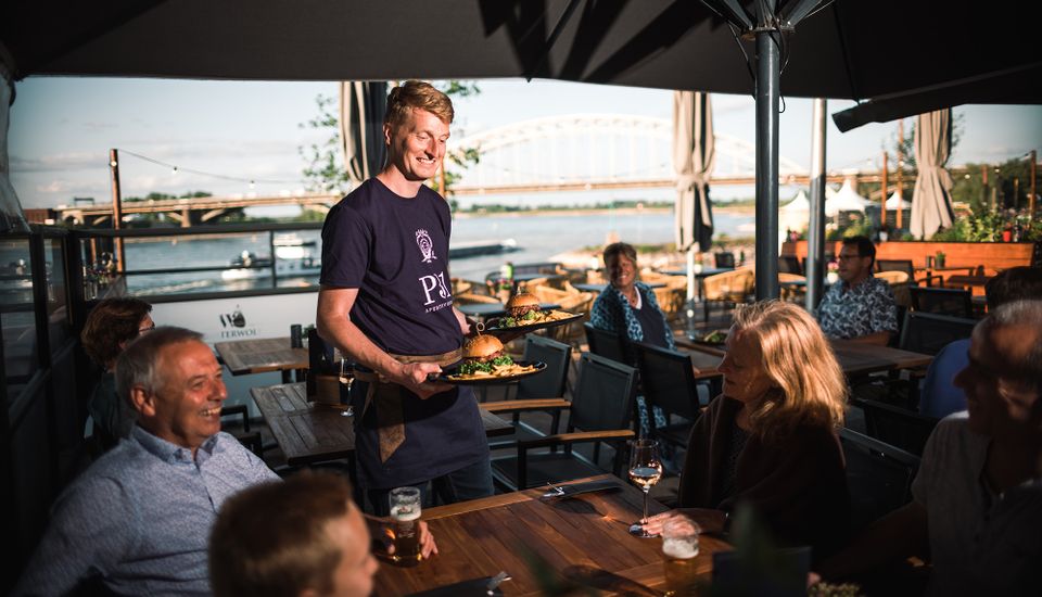 Na een flinke wandeling in de Ooijpolder is het tijd om te lunchen. Kies een mooi plekje uit bij Grand Café Waterwolf, waar je uitkijkt over de Waal. Er is hier een uitgebreide keuze aan broodjes en salades tijdens de lunch.
