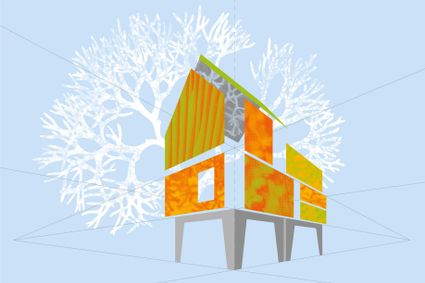 Rechts van de trap zie je twee reliëfs in de muur en daarboven een wit marmeren beeld. De titel verwijst naar het onderzoek van de kunstenaar naar...